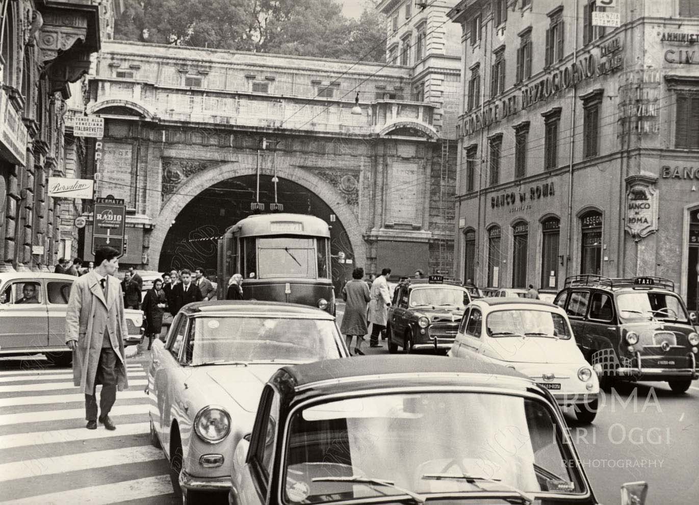 Un 71 esercitato con filobus a due assi presso l,go Chigi.