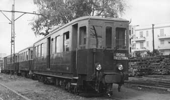 Treno con motrici gr. 200 sulla via Casilina (presso stazione di Centocelle), c. 1956.