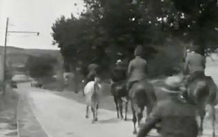 A destra: Mussolini a cavallo in visita alla fattoria Molinario (1929): è