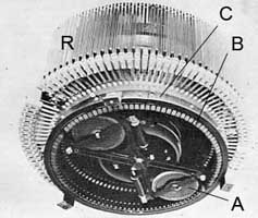 A questo punto l'attenzione dei costruttori si focalizzò sull'avviatore e sia la General Electric che la Westinghouse presentarono le loro soluzioni. L'avviatore Westinghouse era composto da un reostato toroidale R suddiviso in 99 sezioni, ogni sezione facendo capo ad una lamina di contatto B; l'equipaggio mobile, posto in rotazione da un servomotore elettrico, pressava le lamine, una alla volta, contro la corona C a mezzo dei rulli A, cortocircuitando quindi per ogni posizione gli elementi precedenti del reostato. La General Electric ricorse invece ad una disposizione nella quale gli elementi del reostato facevano capo a lamine di contatto montate su un cilindro, realizzando quindi qualcosa di simile ad un collettore di macchina a corrente continua, sul quale scorreva un giogo di spazzole mosso da un servomotore; tra l'altro, questa è anche la disposizione che negli anni a venire sarà utilizzata dal Tecnomasio Brown Boveri nell'avviatore ARG largamente utilizzato in trazione filoviaria. Entrambi i tipi di avviatore provvedevano sia alla trazione che alla frenatura reostatica.